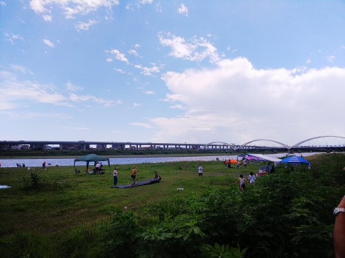河原を見渡せる木陰でのんびりお二人でランチタイム